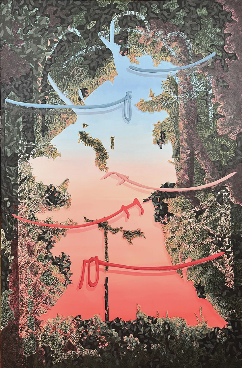 Na tokratni razstavi umetnica predstavlja izbrana dela iz ciklusa Yutori, ki nastaja od leta 2023 dalje. Izraz yutori v japonski kulturi označuje koncept ustvarjanja prostora v času, mislih in vsakdanjih aktivnostih, skratka, umirjanja življenjskega sloga. Dela, predstavljena na razstavi, se torej navdihujejo v trenutkih miru in prostorih vmes. Izhodišče zanje so fotografije, ki jih je umetnica posnela med hojo po vsakdanjih opravkih, v intuitivnih pobliskih med sproščenim motrenjem okolice. Na osnovi fotografij, ki se večinoma osredotočajo na odnos med arhitekturo in rastlinjem, je ustvarila skice in jih nato skozi ustvarjalni proces prenesla v različne medije – kolaže, slike, objekte. Vsa nastala dela so v osnovi (arhitekturne) fantazije, neke vrste sodobni capricci, kjer se organske forme prepletajo z geometrijskimi oziroma strukturnimi in realistični detajli z abstraktnimi v živahnem, bolj ali manj imaginarnem koloritu. Skozi sovisje teh elementov se porajajo fantastične celote, ki na eni strani prikazujejo podobo sodobne urbane krajine, ki se nenehno spreminja, preureja in je »v gradnji«, pogosto na škodo (kvalitete) življenjskega okolja ljudi, živali in še posebej rastlin, obenem pa s prazninami, ki vznikajo nekje vmes, vabijo gledalca, da znotraj tega prehitevajočega se kaosa najde svoje mesto in ga spremeni v prostor svobode, miru in kontemplacije – blazinjenje.